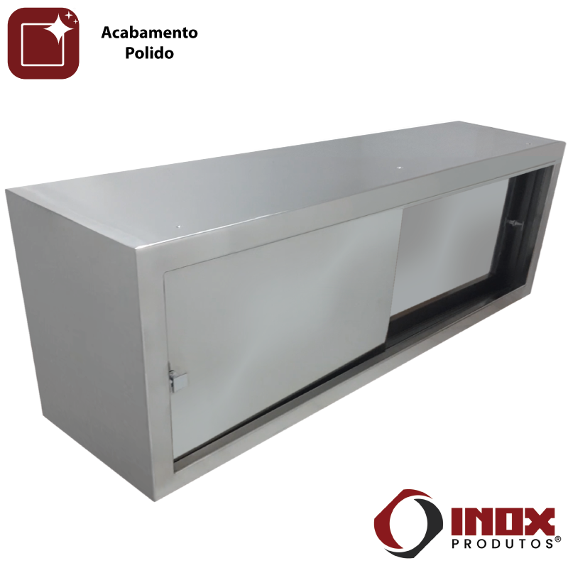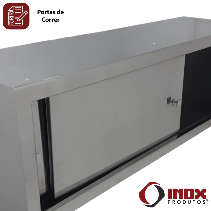 Armário Inox de Parede Suspenso com Portas de Correr - Modelo 20 - Inox 430 - 150x50x58 cm