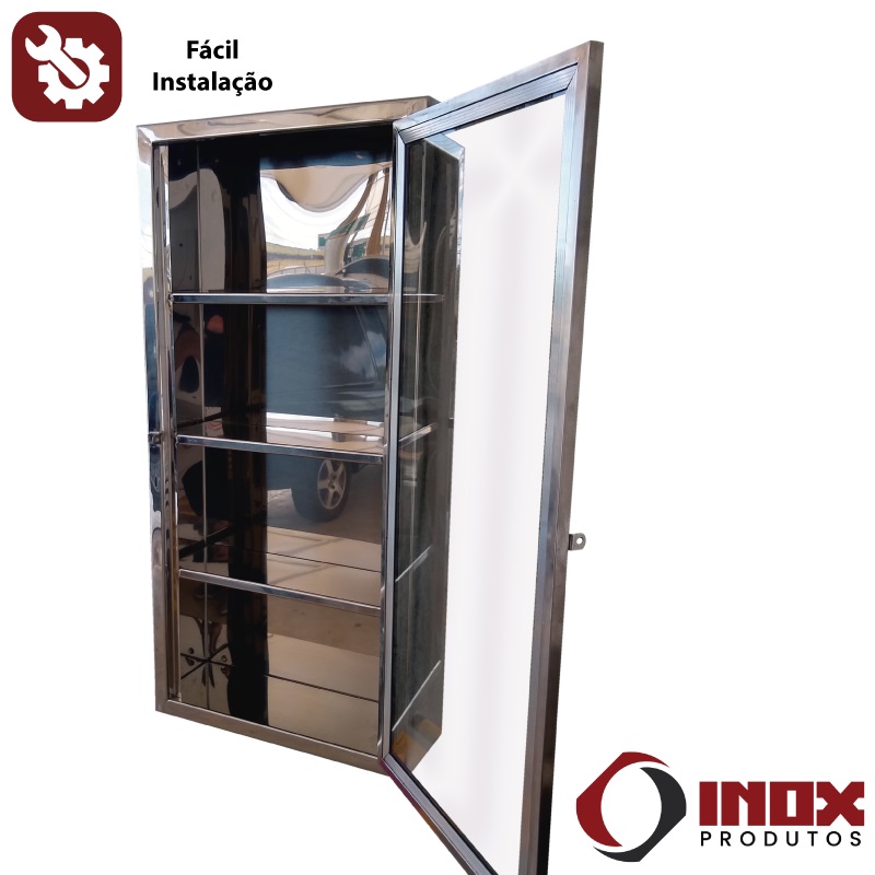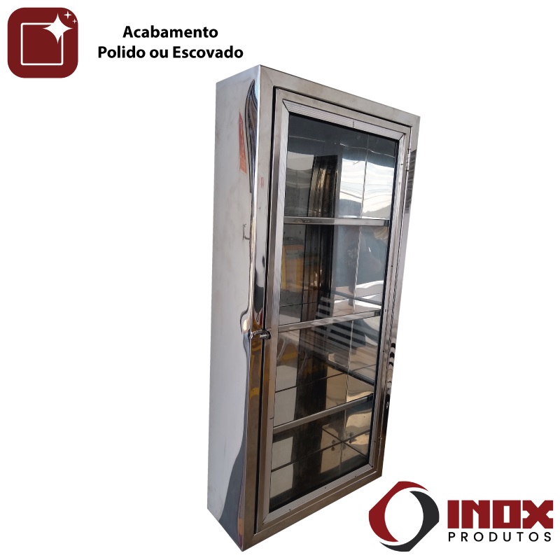 Armário Inox para Fixação na Parede com Portas em Acrílico Transparente - Modelo 07 - Inox 430 - 80x50x190 cm