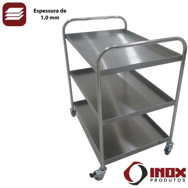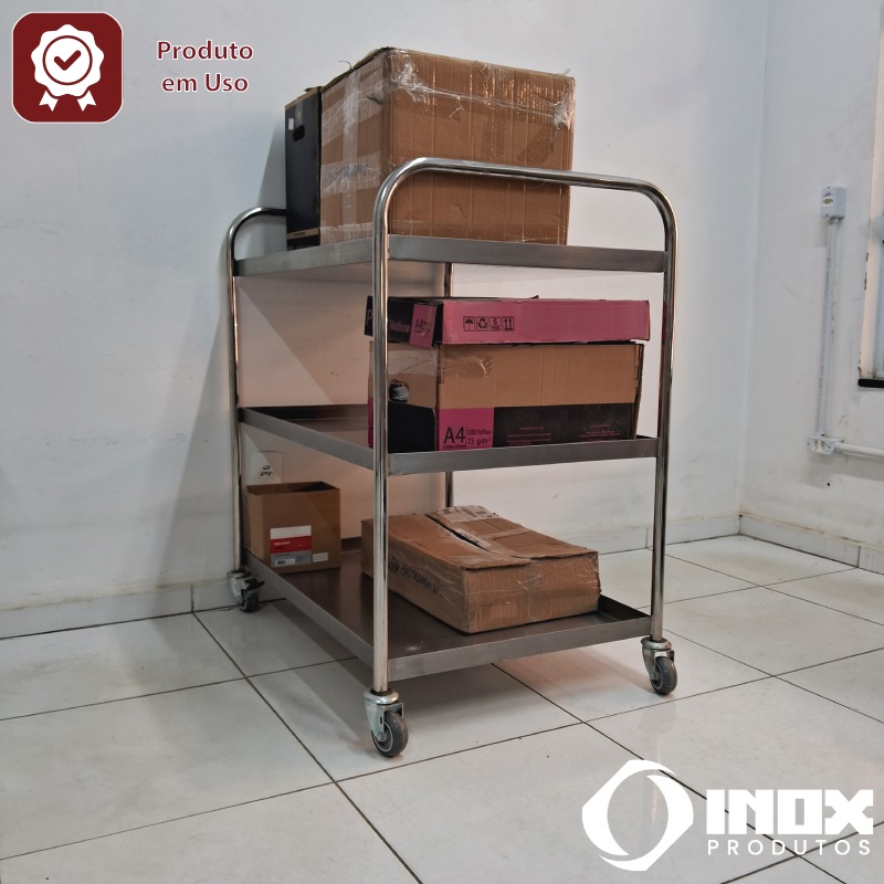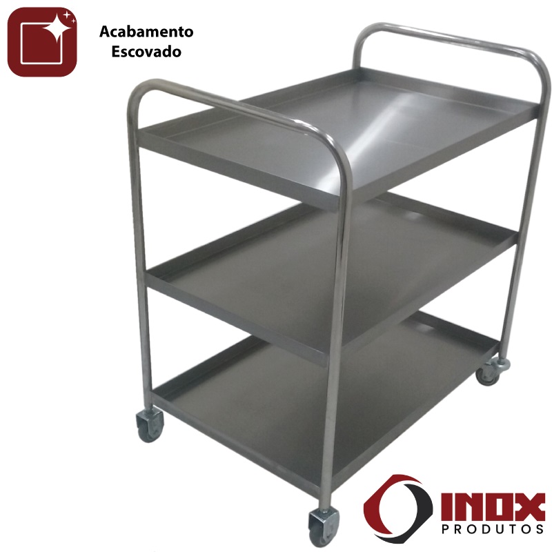 Carrinho Inox Industrial com 3 Planos em Forma de Bandejas - Modelo 05 - Inox 304 - 90x60x90 cm