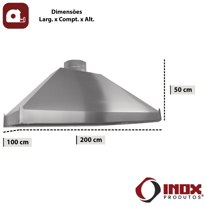 Coifa 09 - Inox 304 (#0,50) 2,00 x 1,00 x 0,50 MT De Altura