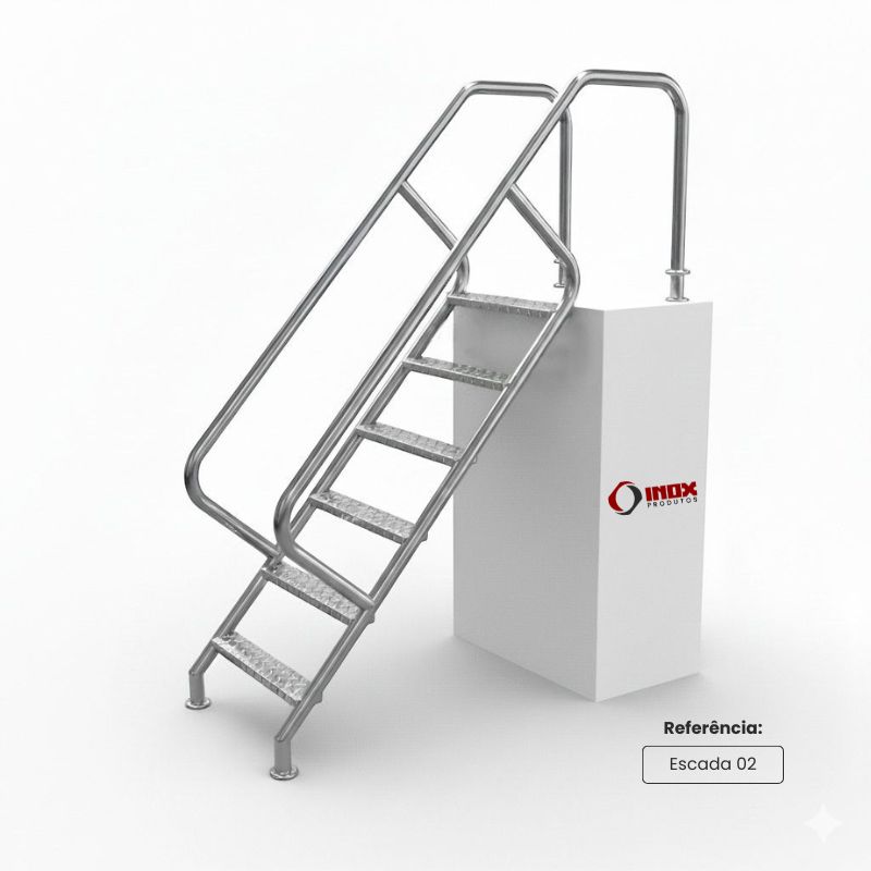 ESCADA INOX PARA PISCINA COM CORRIMÃOS ALTOS - ESCADA 02 - INOX 304 (6 Degr.) De 1,10 A 1,20 MT DE PROFUNDIDADE ESCADA INOX ACESSÍVEL PARA PISCINA