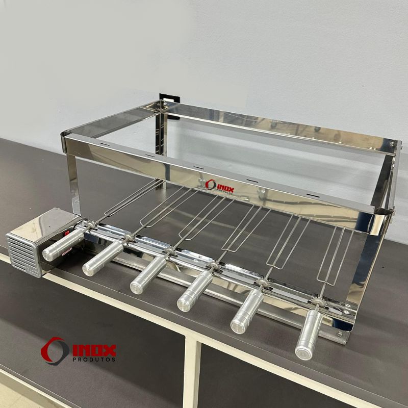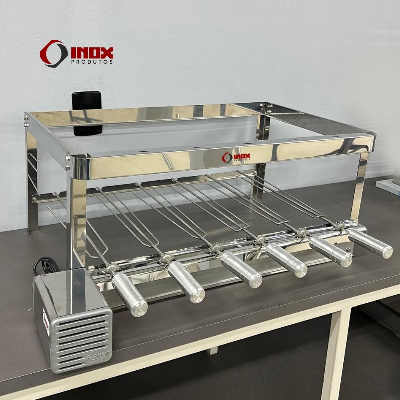 Grill Platinum Inox E-6TR - Motor a Esquerda Grill Giratório Com 6 Espetos Inox Trident