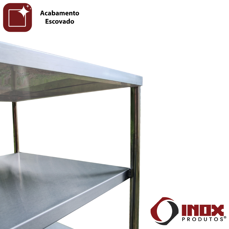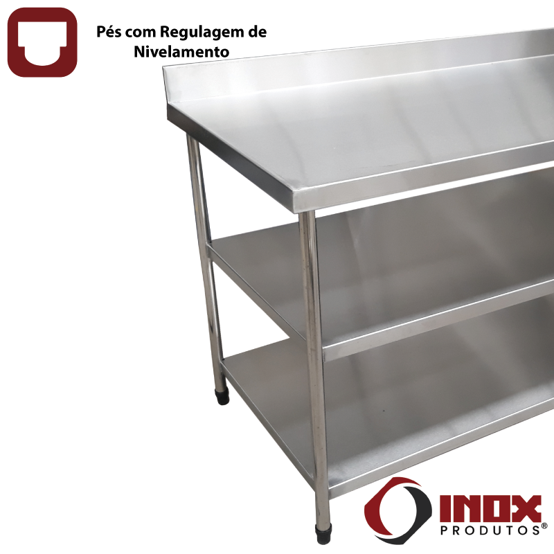 Mesa Industrial Inox Com Frontão e 2 Prateleira Lisas