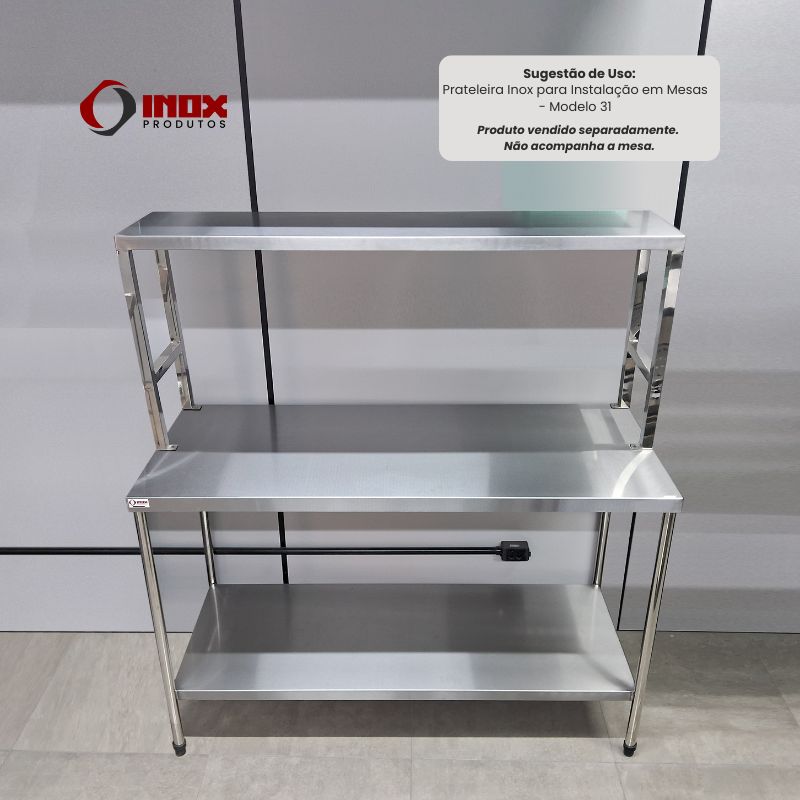 Prateleira Inox para Instalação em Mesas - Modelo 31 - Inox 304 - 150x40x70 cm