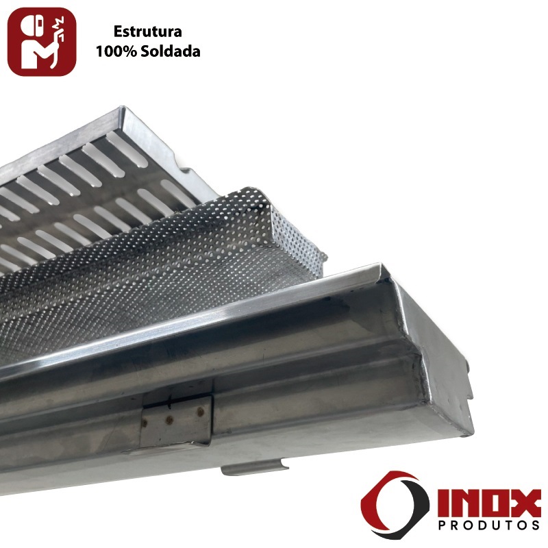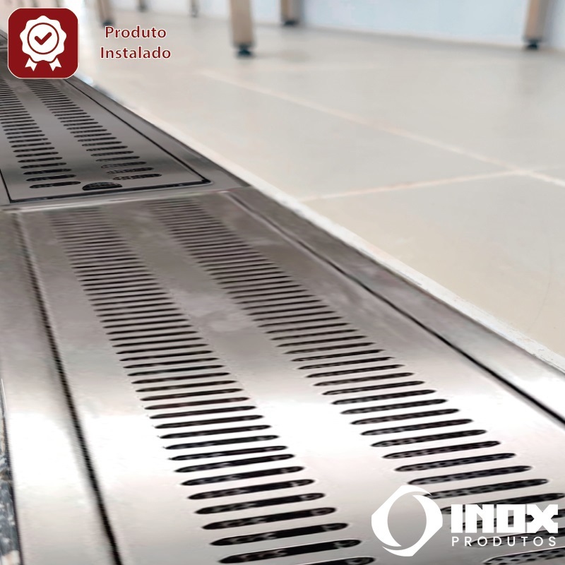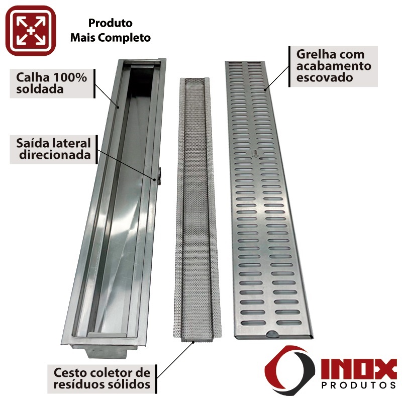 Ralo Industrial Inox com Saída Lateral - Calha, Grelha e Cesto Coletor de Resíduos