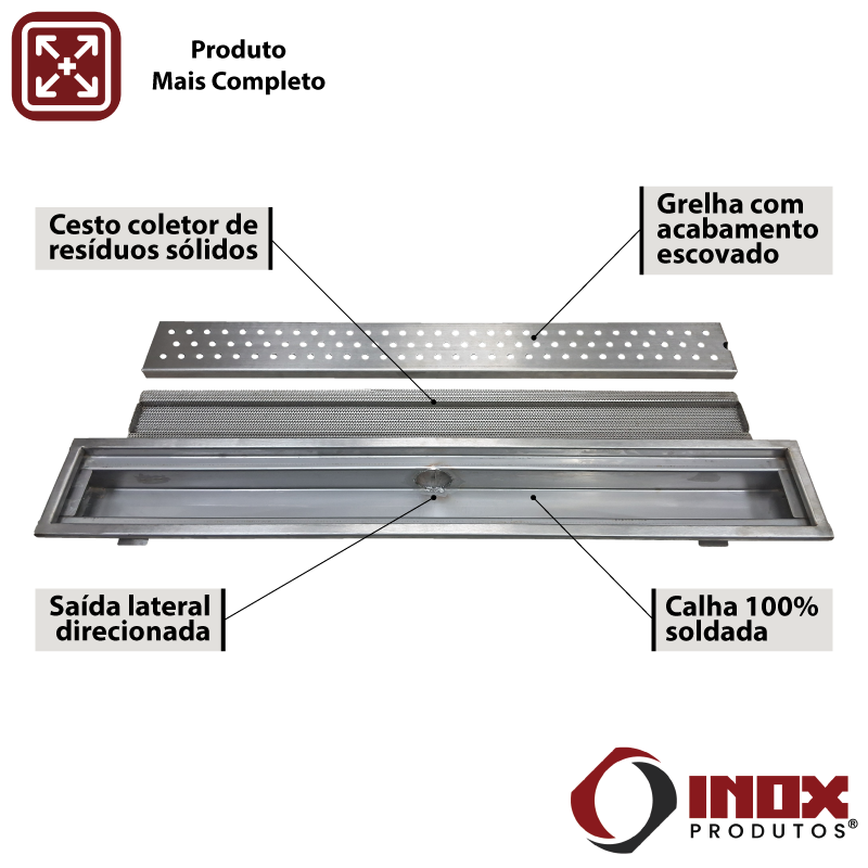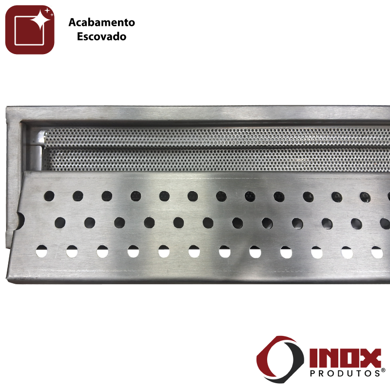 Ralo Industrial Inox - Calha, Grelha e Cesto Coletor de Resíduos