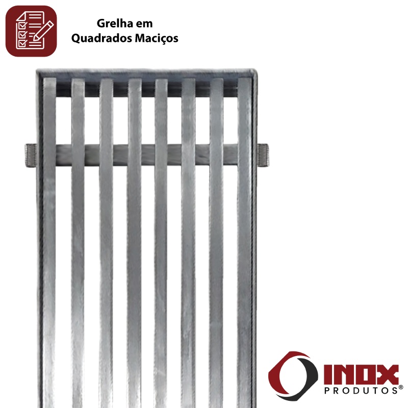 Ralo Inox Com Moldura e Grelha Em Quadrado Maciço